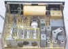 This receiver has a different finish from all the R-388's I've seen before. It is a satin black paint, and has properly silk-screened lettering on it. It has the "break-in" switch which was added to most of the R-388's at the factory, but the lettering at this one was stenciled. I've been told that Collins did produce some with a "plain gray" panel, not wrinkle, for special use, but this is not the "St. James Gray". I can only guess at the origin of these panel details.