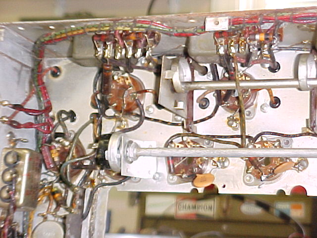 The under-chassis views, showing the replaced components, note the noise limiter shaft & switch.